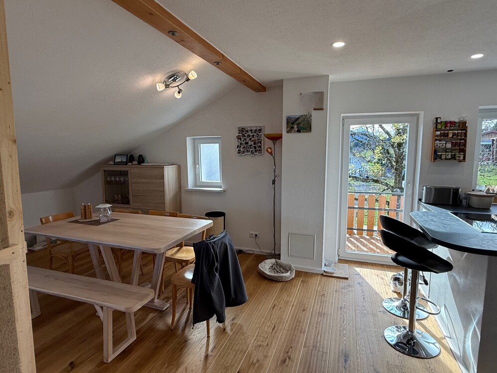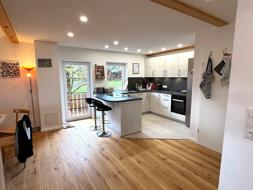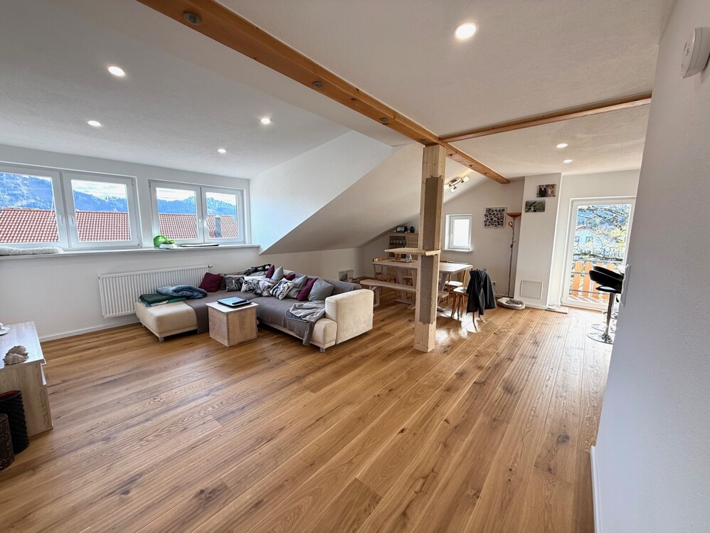 Diese außergewöhnliche Dachgeschosswohnung mit ca. 108 m² Wohnfläche wurde bis 2025 aufwendig kernsaniert und vereint heute hochwertige, moderne Ausstattung mit alpinem Charme und wohliger Geborgenheit. Über den Dächern gelegen, genießen Sie hier ein einzigartiges Wohngefühl aus Licht, Raum und Natur. Highlights der Wohnung: – Großzügiges, offenes Raumkonzept mit sichtbaren Holzbalken, die rustikalen Charakter mit zeitgemäßem Design verbinden – Hochwertige Parkettböden in sämtlichen Wohnräumen – Lichtdurchfluteter Wohn- und Essbereich, ideal für gesellige Abende und entspannte Stunden – Moderne, offene Küche mit praktischer Speisekammer – Stilvolles Badezimmer mit klarer Linienführung, hochwertigen Materialien und angenehmer Fußbodenheizung – Sonniger Balkon mit beeindruckendem Ausblick auf die umliegende Bergwelt – Vier Zimmer, flexibel nutzbar für Paare, kleine Familien oder als exklusiver Rückzugsort – Kellerabteil für zusätzlichen Stauraum – Großzügige, begehbare Dachbühne zur Aufbewahrung persönlicher Gegenstände oder saisonaler Utensilien Besondere Merkmale & Ausstattung: – Effiziente Pellet-Solar-Heizungsanlage aus dem Jahr 2013 – nachhaltig, umweltfreundlich und kostensparend – Großer Gartenanteil in Hanglage, inklusive bestehendem Baukonzept zur optimalen Nutzung – Eigener Gartenbereich, künftig direkt von der Terrasse aus erreichbar – Bereits 2009 genehmigte Dachgaube mit Terrasse (für eine heutige Umsetzung ist eine Aktualisierung bzw. Nachbeantragung erforderlich) – Attraktive Möglichkeit zur Erweiterung der Wohnfläche und Steigerung des Wohnkomforts durch Dachgaube und Terrasse – Anschluss für Schwedenofen oder Kamin bereits vorhanden – für zusätzliche Behaglichkeit – Drei-Parteien-Haus mit angenehmer Eigentümerstruktur • eine Einheit eigengenutzt durch einen Miteigentümer • eine Ferienwohnung • diese angebotene Wohneinheit – Großzügiger Kelleranteil mit viel Stauraum – Außenstellplatz sowie weitere Parkmöglichkeiten direkt rund um das Haus Ob als exklusiver Rückzugsort, stilvolles Zuhause für Paare oder als komfortabler Wohnraum für eine kleine Familie – diese Dachgeschosswohnung vereint hochwertiges Wohnen, Funktionalität und Naturerlebnis auf besondere Weise. Hier erleben Sie Freiheit, Licht und Weitblick in einer einmaligen alpinen Kulisse. Vereinbaren Sie noch heute einen Besichtigungstermin und lassen Sie sich von diesem besonderen Wohnangebot begeistern.